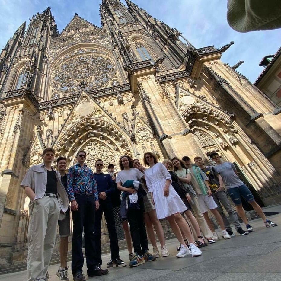 Studenti 4. Fi se svojí učitelkou využili krásného počasí a vyrazili na procházku po stopách dějin umění na Pražský hrad. Konzultace pod širým nebem, přímo v srdci historické Prahy, byla příjemným zpestřením v čase příprav na maturitní zkoušky. Dobrou volbou bylo vyrazit právě teď, protože Pražský hrad bez turistů je ojedinělý zážitek. Na okamžiky, kdy byli téměř jedinými návštěvníky v katedrále sv. Víta, budou všichni i po letech vzpomínat.