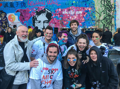 Naši starší kolegové z Akademie Michael pod vedením pedagoga, tvůrce loga OF, Pavla Šťastného se ve čtvrtek 7. listopadu 2019 zúčastnili unikátní akce. Spolu se třiceti umělci z pěti zemí dali k výročí 30 let svobody novou tvář Lennonově zdi na pražské Kampě v rámci projektu Meet Art. Pavla Šťastná, studentka 3. V, vytvořila ve spolupráci s Lukášem Sedláčkem, zakladatelem poetizer.com, na zdi výraznou kaligrafii textů na téma Láska&Svoboda. Odkazují tím na prvopočátky tvorby na zdi, kdy zde byly psány úryvky textů a básní.