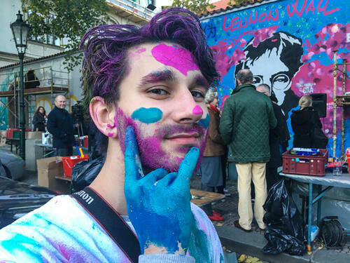 Nová tvář Lennonovy zdi a studenti školy Michael