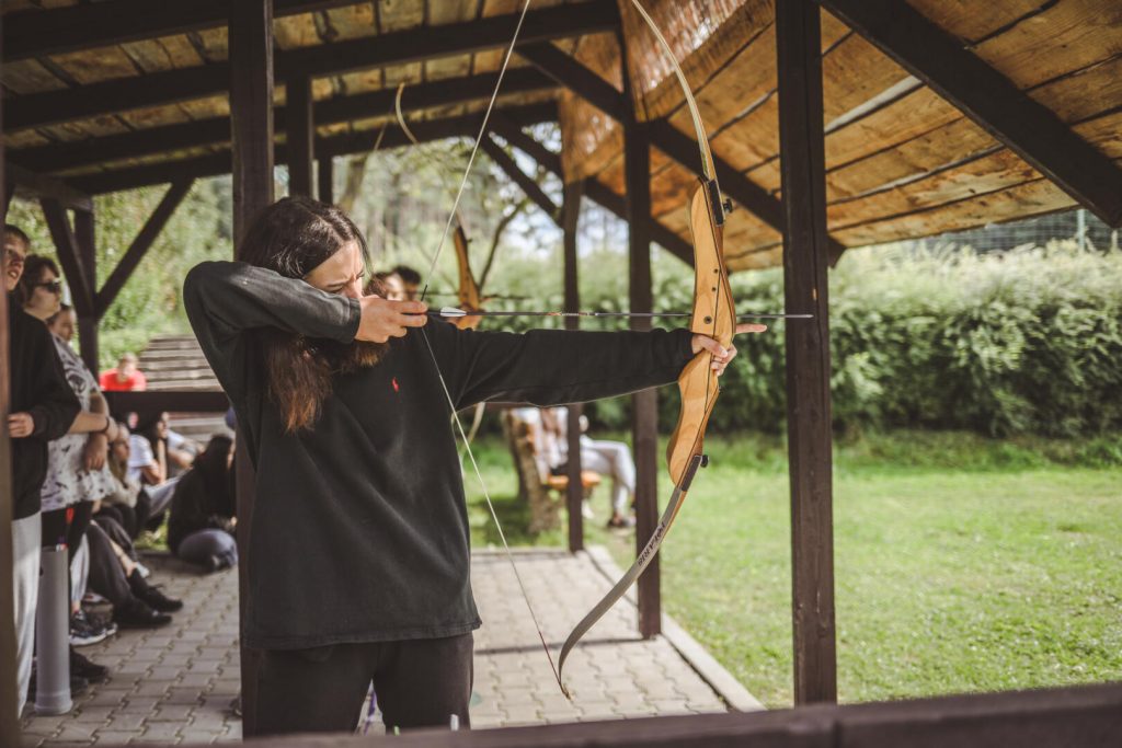 Další den jsme zažili řadu skvělých momentů, jakými byla například střelba z luku a lezení po stěně. Ježdění na voru a kajaku bylo taky super, i když některé překvapilo, že se na vodě namočí. Na řadu přišla i jízda na laně v lanovém centru, tzv. zipline. A i přes nabitý program jsme se stihli skvěle pobavit a více se sblížit. Jídlo je výborné, i když se najdou jedinci, kteří společnou jídelnu bojkotují a čekají na večer, když se na spodní terase začne prodávat pizza :-).